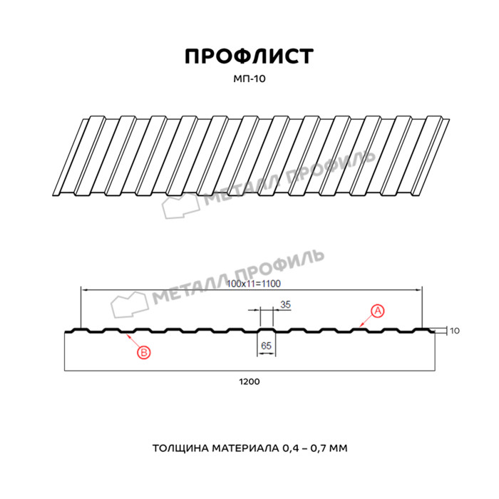 Профлист Металл Профиль МП-10 0.35 и менее Цинк Бесцветный | A Показать информацию